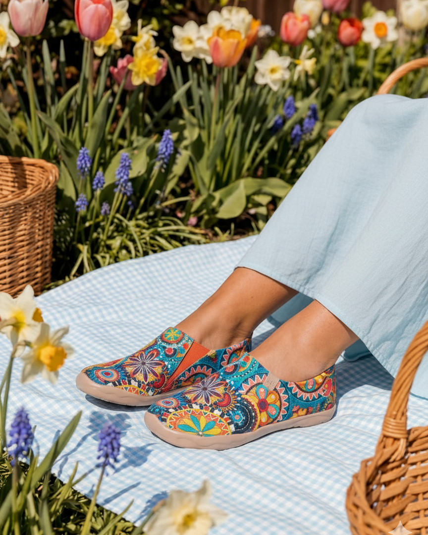 Spanish original, uniquely painted shoes where art meets everyday comfort. Lightweight, soft, and easy to wear, each pair blends artistic expression with natural materials and thoughtful design—comfortable enough for daily walks, effortless enough for long journeys, and distinctive enough to stand apart.