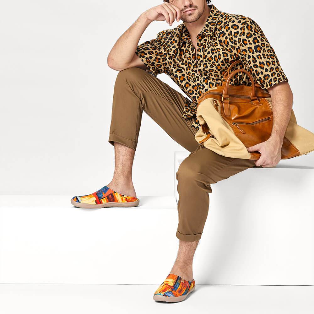 Color inspiration from a passionate palette. Lift up your life when things don't look so bright with UIN Color Brush Canvas Shoes. Throughout the painting, it is filled with brushwork, blending with blue, yellow and orange colors, all of which are bright colors with high saturation and all together constructed as abstract artwork brimming with vigor and energy. Put on this color brush canvas slippers, light up your ordinary life with extraordinary fun.