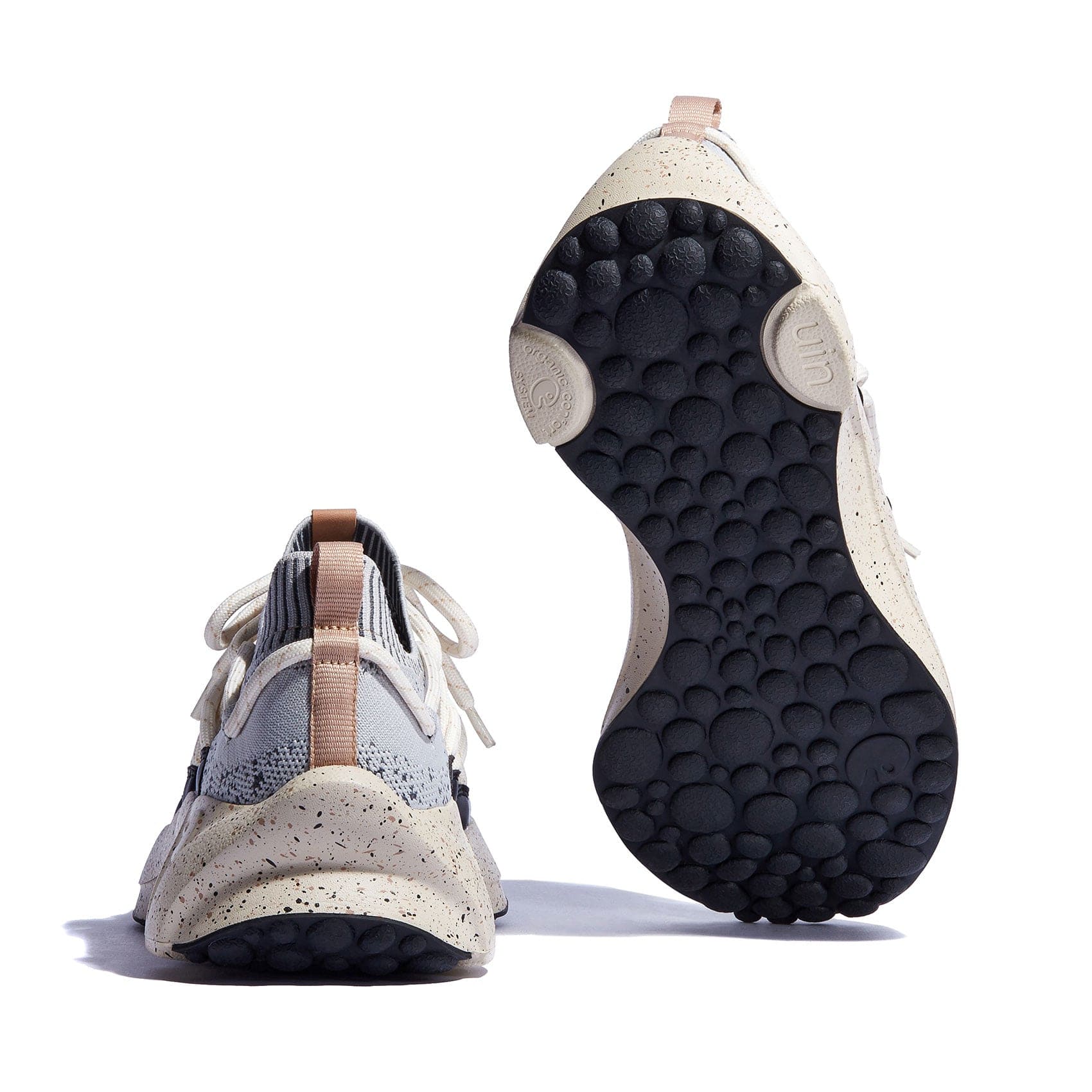 The irregular pebble outsole that extends from the toe to the heel provides better cushioning and resilience. The slip-proof rubber outsole provides excellent grip, easy to deal with all kinds of slippery conditions.
